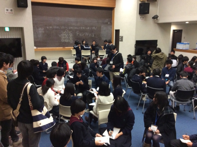 学生一人に生徒が7~8人で15分×3セットのグループディスカッション